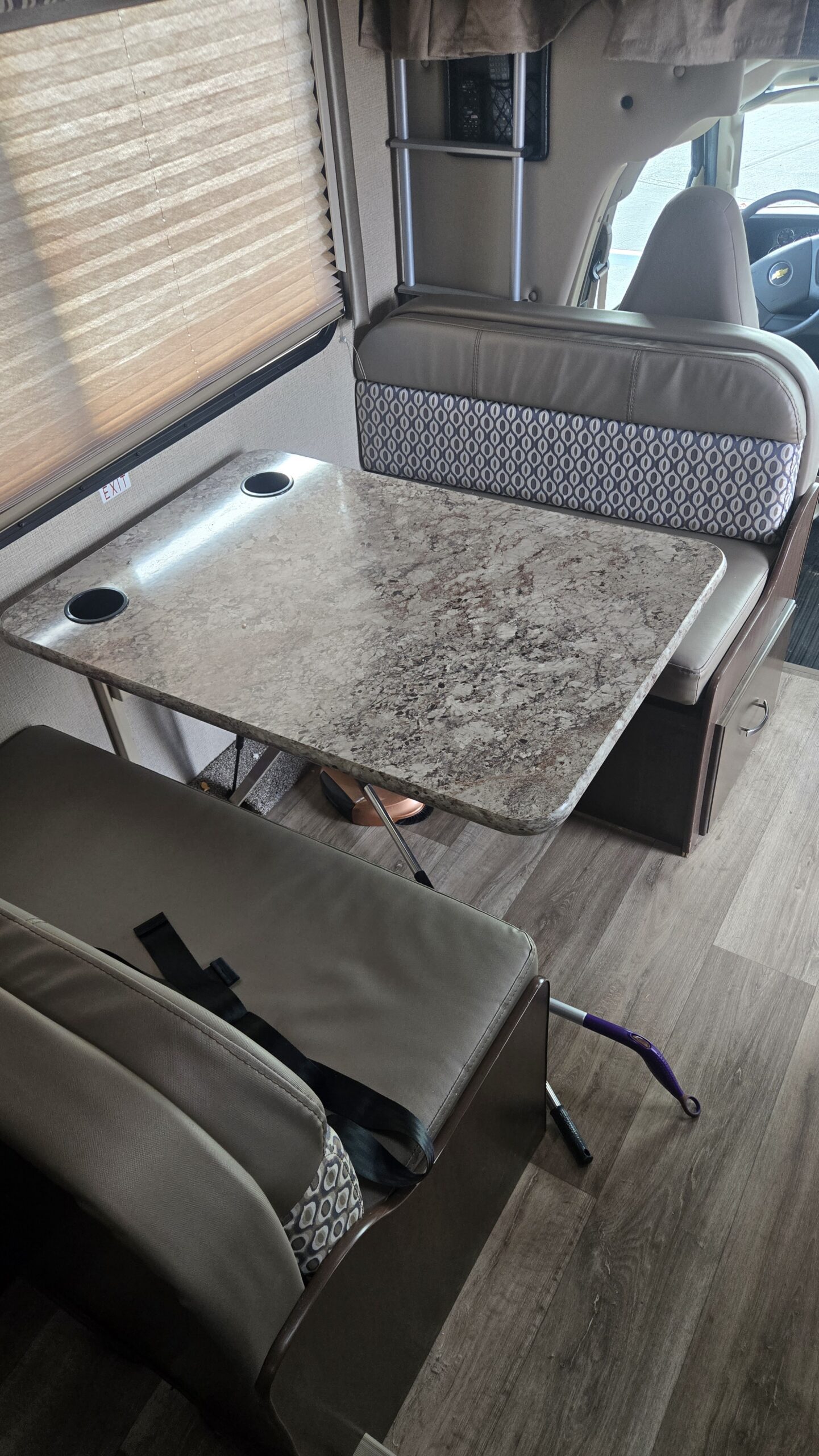 22 foot Thor Class C! Bunk above drivers area and rear queen size bed. Table folds down to small bed. Outside awning, generator, stove refrigerator and microwave. Lots of storage inside and out. $225.00 per night